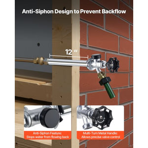 12 in Frost-Free Sillcock 1/2" PTC x 3/4" MHT Hose Bibb Anti-Siphon Valve