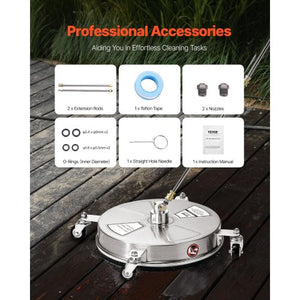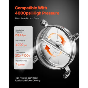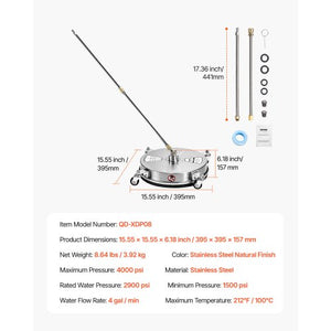 15" Pressure Washer Surface Cleaner 4 Wheels 4000 Max PSI 2 Extended Wands