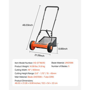 This 16in push reel mower with five 65Mn steel blades delivers precise, even cuts, for small to medium lawns. The adjustable height design accommodates different grass types, and the large wheels and sponge handle reduce mowing effort. The included grass catcher bag makes clean-up easy.