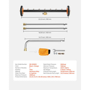 24" Pressure Washer Undercarriage Cleaner with 2 Wheels 2 Extended Wands