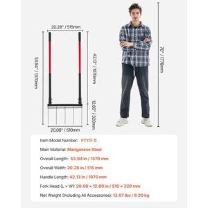 5 Tine Broad Fork Tool Heavy Duty U-Shaped Pitch Fork for Gardening Spading