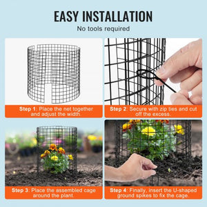 The garden cage is easy to set up with the included black zip ties to connect the metal mesh. When not in use, it can be easily disassembled and stored, saving space.