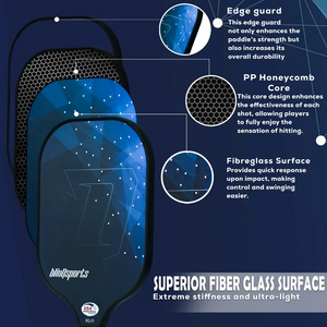 Tired of buying new pickleball paddles all the time because they wear out quickly? Our clearance pickleball paddles are different. It's built tough with materials like fiberglass and honeycomb core, so the pickleball paddle set stays strong even after lots of games. Plus, pickleball paddles set are approved for professional tournaments by the USAPA. Having the right pickle-ball equipment is important for a better playing experience. That's why ours has a grip that's 4.5 inches around and 4.8 inches long. Pickleball sets are comfortable to hold and prevents slipping, even during intense games. The grip is also designed to absorb sweat and cushion your hand, so you can focus on playing without worrying about dropping the paddle