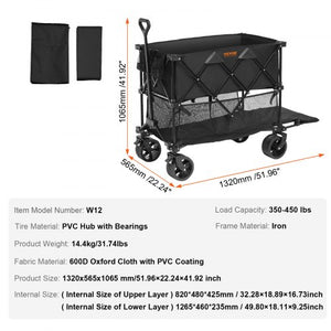 Foldable Double Decker Wagon, 400L Collapsible Wagon Cart with All-Terrain Wheels, Heavy Duty Folding Wagon Cart 350-450 lb Weight Capacity for Camping, Shopping, Garden, 52" Extra Long Extender