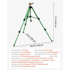 Combining a quality brass sprinkler head with a tripod, this sprinkler is waterproof, rust-resistant for long-lasting use. It irrigates areas up to 5539 sq. ft, enhancing irrigation efficiency. The adjustable head, leg locks, and 3-level height adjustment make installation and operation easy!