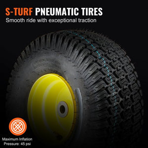Premium rubber forms the foundation of all lawn mower tires. They offer superior grip and shock absorption. The maximum pressure these tires can handle is 45 PSI. The tread pattern provides excellent traction on various surfaces. This ensures a smooth and stable ride while mowing your lawn. These tires' ability to absorb shocks makes your towing experience more comfortable. You can tackle uneven terrain without worrying about tire performance. The premium quality of these pneumatic tires ensures they last longer and perform better.