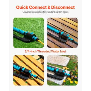 Designed for compatibility with standard garden hose connectors, our water sprinkler for lawn features a 3/4-inch threaded water inlet, ensuring a secure and effortless connection for smooth and efficient watering.