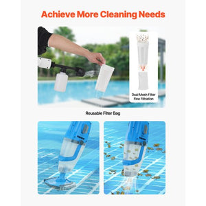 With a built-in 4500mAh battery, this rechargeable pool vacuum provides up to 60 minutes of runtime on a full charge, giving you enough time to clean your entire pool without the hassle of power cords.