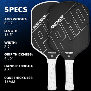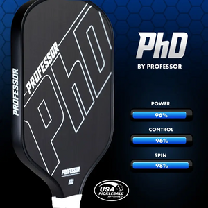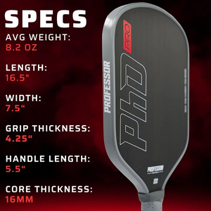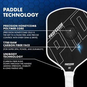 Professor PhD Raw Carbon Fiber Pickleball Paddle - 16MM - USA Pickleball Approved - Honeycomb Core - Power & Control