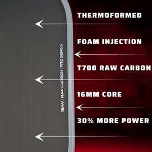 USA PICKLEBALL APPROVED-Officially tested &approvedby USA Pickleball for tournament play.RAW CARBON FACE-Made withToray T-700 carbon fiber, you'll be shocked at just howmuch more spinyour balls will get, landing in every time.PERFECTLY BALANCED -Super light yet firm feel, with the right handle length to paddle face length ratio. Every swing will feelonpoint & accurate.LONGER HANDLE-5 1/2 Inch Handle in not to long and not to short, its just right. Easilyhit a back hand with two handsif thats your style16MM THICK- Theperfect thicknessto getamazing power, yet still have all theprecisecontrol for perfectly placed dinks.UNBEATABLE PRICE