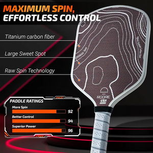 ·Titanium Surface Technology: The combination of titanium and carbon fiber gives this paddle superior strength and responsiveness. It provides a perfect blend of power and control, making it easier to dominate every shot.·Edge Foam Injection: Injected foam along the paddle’s edge increases stability and dampens vibrations. This results in better shot accuracy and a larger sweet spot, offering a smoother, more reliable playing experience.·Peel Ply Grit Surface: Features a unique peel ply grit surface that enhances spin and control. This textured surface increases friction between the paddle and the ball, giving players a competitive edge in applying spin to their shots.·16mm Polypropylene Core: The Polypropylene 16mm core reduces vibrations and increases control, giving players better feedback and reducing strain during long matches. It’s designed to provide more power without compromising finesse.·Thermoformed Construction: The advanced thermoforming process creates a more rigid paddle, ensuring consistent performance and a solid feel. This construction enhances durability, allowing you to maintain top-level play over extended use.·Hybrid Shape: The carefully designed shape provides an excellent balance between reach and maneuverability. Whether at the net or the baseline, it allows for quick reactions while maintaining control.·Enhanced Sweet Spot: Thanks to the combination of a carbon fiber surface and edge foam injection, the paddle boasts a larger sweet spot. This makes it easier to hit consistent, powerful shots, even on off-center strikes.·Durability and Longevity: Built with high-quality materials, this paddle is designed to endure rigorous play while maintaining top performance. Its robust construction ensures that it can withstand the demands of competitive players.·5.5-Inch Handle Length: The paddle features an ergonomically designed 5.5-inch handle, offering enough length for two-handed grips. This allows players more leverage and control, especially for backhand shots or those who prefer two-handed swings.
