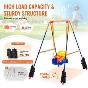 Swing Sets for Backyard 3 in 1 Toddler Swing Set with 4 Sandbags Foldable