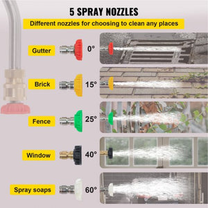 Using a pressure washer shouldn't be a complicated task. This pressure washer wand with strap belt is designed with ease of use in mind. While there might initially be a short learning curve, it is quite simple to master. The wand includes different spray nozzles for various cleaning tasks, allowing you to switch between them easily, depending on the job.