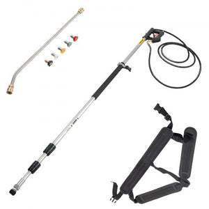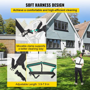 It also has a comfortable, adjustable support harness that helps manage this telescoping pressure washer wand, especially during long cleaning sessions. This double strap adjusts to fit different body sizes, reducing fatigue. Even though the wand can be a bit heavy, the harness and overall design make it easier to control, particularly when tackling large cleaning areas. These features help the power washer extension wand simplify challenging cleaning tasks.